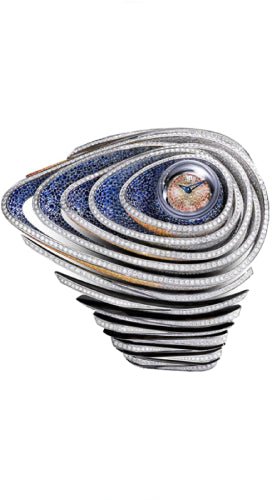 The Audemars Piguet Haute Joaillerie Sapphire Orbe represents the manufacture’s mastery of gem-setting artistry, transforming the iconic Royal Oak Offshore into a statement of pure luxury. This 47mm creation showcases Audemars Piguet’s ability to seamlessly integrate their legendary octagonal case architecture with exceptional high jewelry techniques. The white mother-of-pearl dial serves as a luminous canvas beneath the diamond-paved bezel, while the fully gem-set bracelet creates an uninterrupted flow of brilliance. This reference exemplifies the brand’s commitment to pushing boundaries in both horological craftsmanship and jewelry excellence.